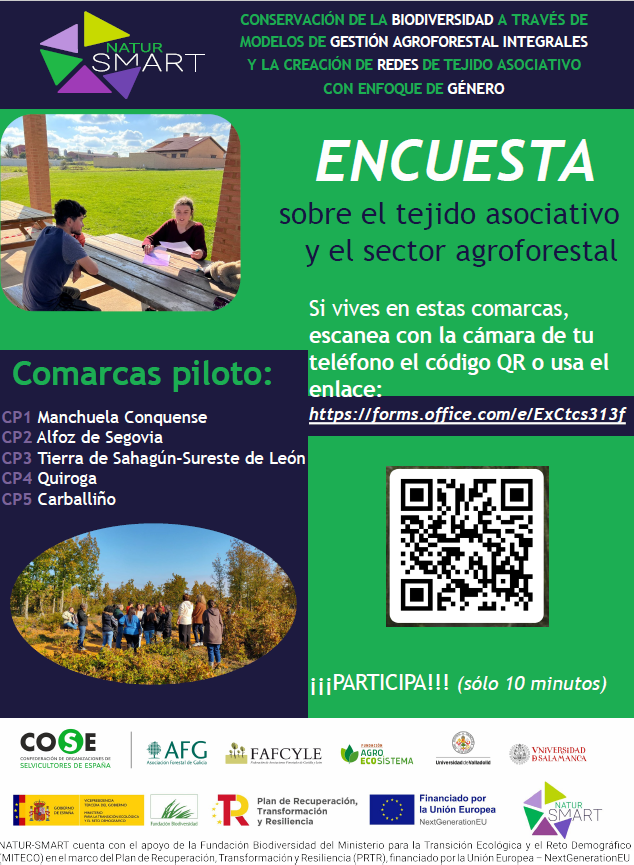 ¡El medio rural y el sector forestal necesitan tu participación! El territorio al que pertenece tu municipio forma parte del proyecto NATURSMART, donde trabajamos por la conservación de la biodiversidad y los sistemas agroforestales, tejiendo nuevas redes entre comunidades. Estamos desarrollando una encuesta y tu opinión como habitante del territorio puede ayudarnos mucho.